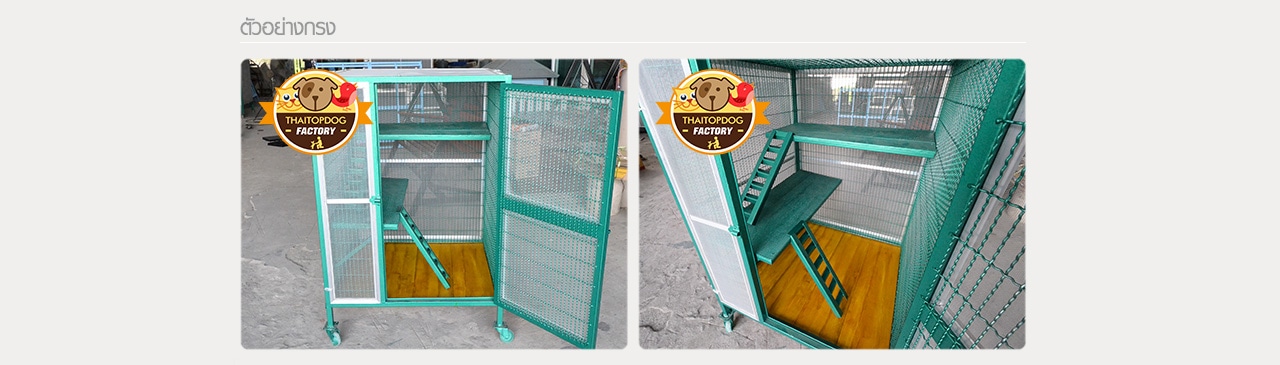 -กรงแมวเหล็ก -พื้นไม้ (ไม่มีถาดรอง) -ประตูเปิดใหญ่ 1บาน -ล้อเลื่อน 4ล้อ -ภายในมีชั้นนอนและใช้ปีน (ชั้นไม้เฌอร่าโครงเหล็ก) *สามารถออกแบบและสั่งทำได้ *สามารถนำแบบมาให้ผลิตได้ตามต้องการ *บริการติดตั้งนอกสถานที่ กทม. (ตจว.มีค่าใช้จ่ายเพิ่มเติม)